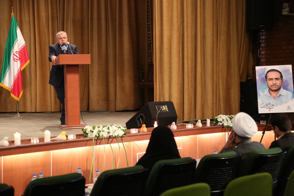 در آغاز مراسم حجت الاسلام و المسلمین حاج آقا رجالی نماینده مقام معظم رهبری در دانشگاه طی سخنانی از شهید دکتر شهریاری به عنوان دانشمندی فرزانه یاد کرد که لایق مقام شهادت بود. وی خاطر نشان ساخت که «معلمی» تکثیر علم، دانش، اندیشه و تجربه و «شهادت» نیز تکثیر ایثار، فداکاری و جانباختگی است و هنگامی که معلم به مقام شهادت دست مییابد، به معنای تکثیر اندیشه و دانش توأم با ایثار و فداکاری است. ایشان شهادت شهید شهریاری، شهید فخریزاده و شهید علیمحمدی را مصداق تکثیر اندیشه، فداکاری و شهادت دانست و از کلام استاد شهید مطهری یاد کرد که شهادت تزریق خون در پیکر اجتماع است به ویژه اجتماعی که دچار کم خونیست.