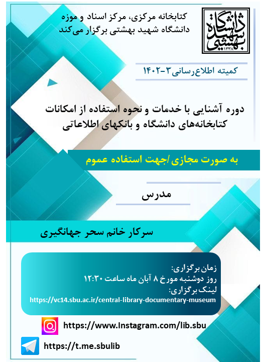 علاقهمندان میتوانند از طریق لینک https://vc14.sbu.ac.ir/central-library-documentary-museum وارد کلاس شده و از آموزشها بهرهمند شوند.